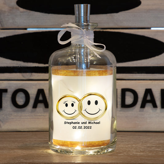 Stoamandal Flaschenpost - Hochzeit Eheringe - personalisiert - LED Flaschenpost beleuchtet