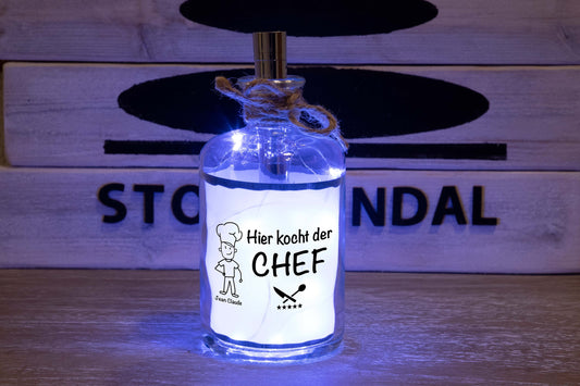 Stoamandal Flaschenpost - Hier kocht der Chef - personalisiert - LED Flaschenpost beleuchtet