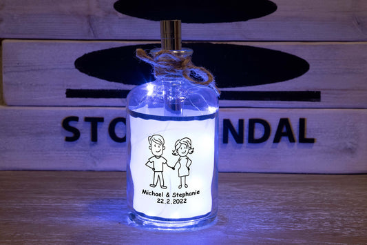 Stoamandal Flaschenpost - Hochzeit Ehepaar - personalisiert - LED Flaschenpost beleuchtet