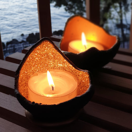 Lichtschale gold - Beton schwarz-grau - personalisiert - mit Halter