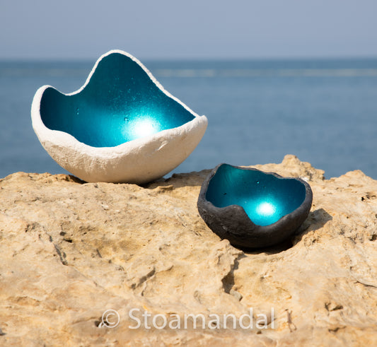 Lichtschale swirly blue lagoon - Beton schwarz - grau