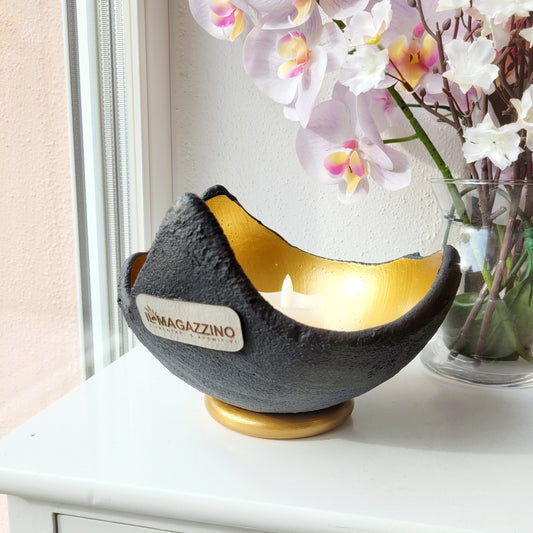 Lichtschale gold - Beton schwarz-grau - personalisiert - mit Halter