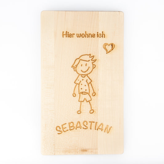 Türschild mit personalisierbarer Gravur - Holz - mit Hausnummer
