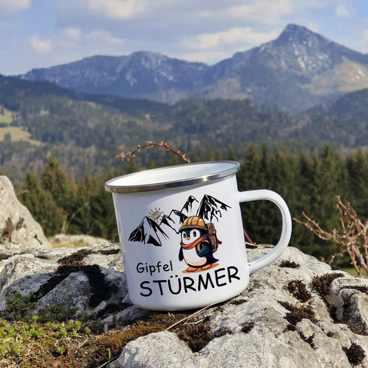 Tasse - Gipfelstürmer Pinguin - Emaille (Silber)