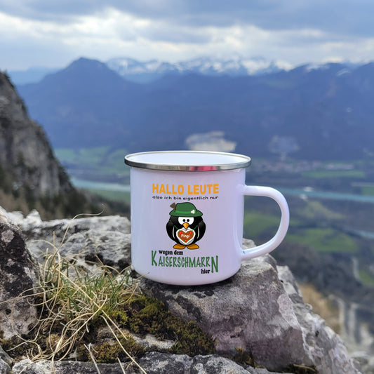 Tasse - Bergsteiger Pinguin - Emaille (Silber)