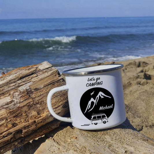Tasse - Let's go camping - personalisiert - Emaille (Silber)