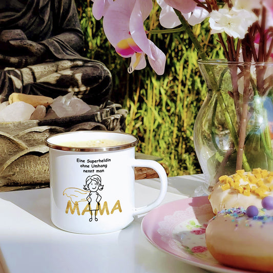 Tasse - Eine Superheldin ohne Umhang nennt man Mama - Emaille (Silber)