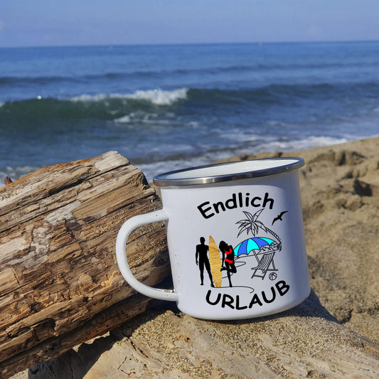 Tasse - Endlich Urlaub - Emaille (Silber)