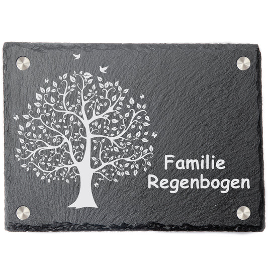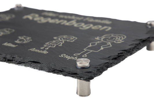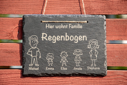 Türschild mit personalisierter Gravur - Schiefer - Familie Regenbogen