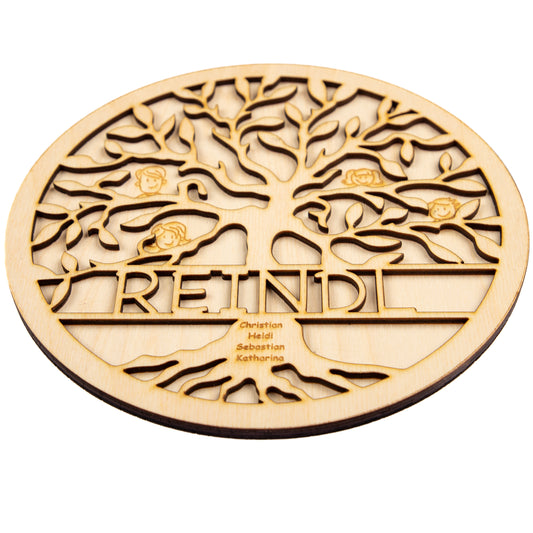 Türschild Holz - Motiv "Baum des Lebens" - personalisiert