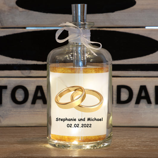 Stoamandal Flaschenpost - Hochzeit Ehering - personalisiert - LED Flaschenpost beleuchtet