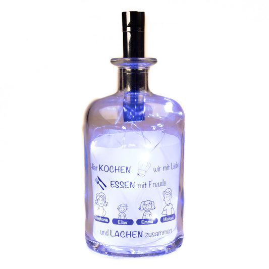 Stoamandal Flaschenlicht - Hier KOCHEN wir mit Liebe - personalisiert - LED Flaschenpost beleuchtet