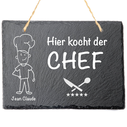 Hier kocht der Chef - Schild aus Schiefer - personalisierbar - original stoamandal Qualität