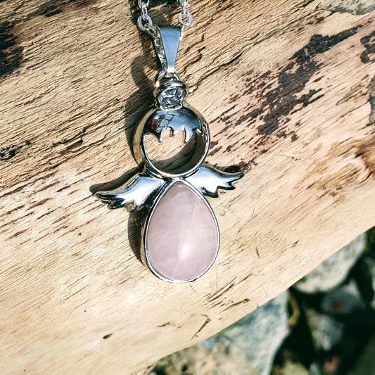 Edelstein-Anhänger Schutzengel Rosenquarz - Schmuck