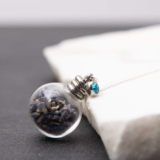 Halskette versilbert mit Kugel-Anhänger - Lavendel - Schmuck